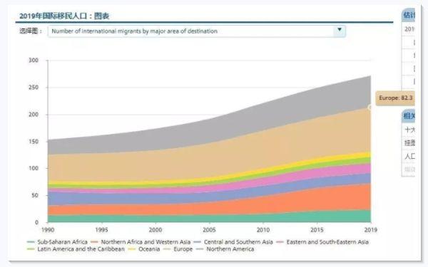 联合国全球移民数据报告称,据估计,2019年全球国际移民数量从2010年的5100万增加到2.72亿,在全球人口中所占的比重将从2010年的2.8%上升到3.5%。