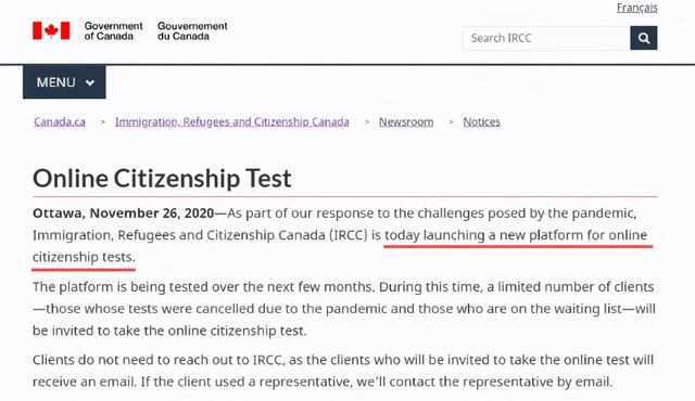 11月27日,加拿大移民局宣布,入籍考试将恢复开放,在全新的线上平台进行,无需前往考场进行考试。