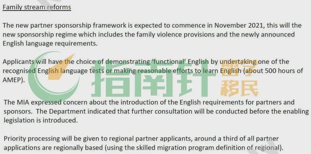 2021年11月开始,配偶移民将迎来包括了家庭暴力的条款以及英语语言要求的重大改革。