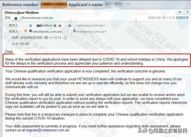 但很不幸,递交后遇到了寒假,寒假后又遇到了新冠肺炎,于是一直等到2020.8.18,才有了第一次消息,评估机构告知我们一直无法联系到学校,让申请人自己提供学校档案馆的联系方式,由于学校也一直没有开学,直到2020.9.28,才终于在多次沟通后才将学历认证完成。