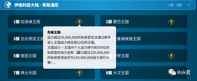 先锋王国按赛季进行评选,当前赛季中王国战力排名靠前的数个王国为本赛季先锋王国。