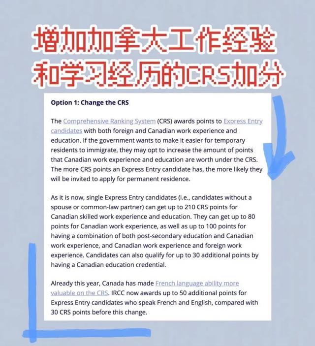 CRS是加拿大快速通道申请使用的打分体系,海外和加拿大本地工作经验以及教育水平都关系到CRS分数。
