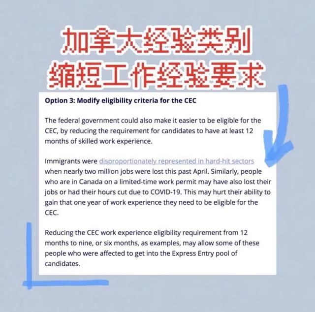 政府还可能通过减少对申请人至少12个月全职工作经验的要求,来帮助申请人更容易获得CEC资格。