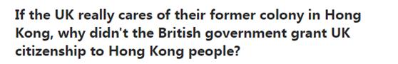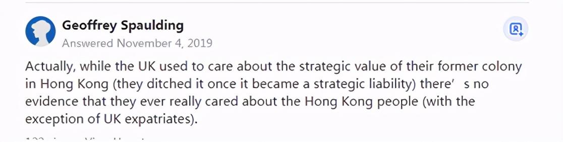 Quara也有网友犀利指出,英国政府关心的只是香港的政治价值,并不关心港人哈。