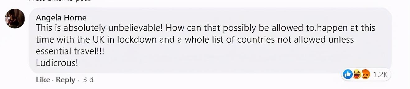 这简直难以置信!现在英国处于一级防范状态,而且除非必要的旅行,否则所有的国家都不允许这样的事情发生!滑稽!