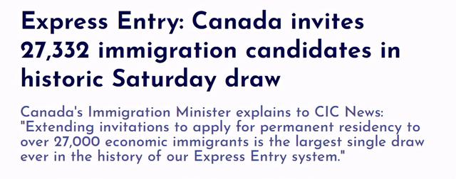 而加拿大则直接针对留学生开启了抽签式的移民措施,开放了27,332个移民名额。