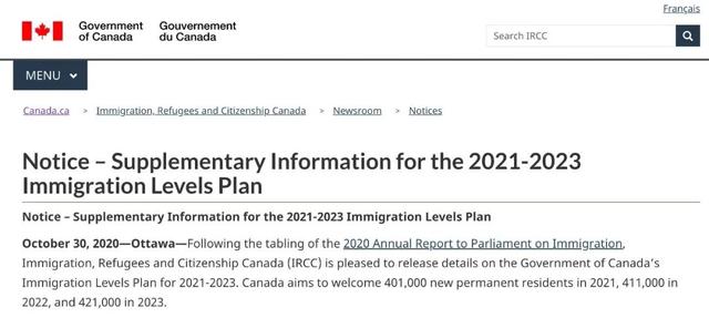 加拿大作为主流的移民国家,自由党执政期间,最近几年一直按照“三年百万移民计划”制定移民配额,按照加拿大移民局去年10月底公布的2021年~2023年移民计划,这三年分别新增40.1万、41.1万、42.1万移民,三年累计新增123万余名新移民!