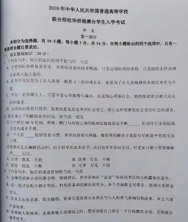 这个是2019年华侨生中文试题