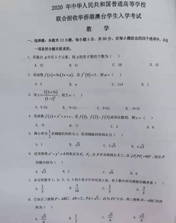 这个是2020年数学题