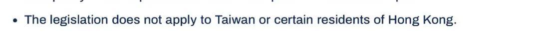 - 有关法例并不适用于中国台湾或某些香港居民