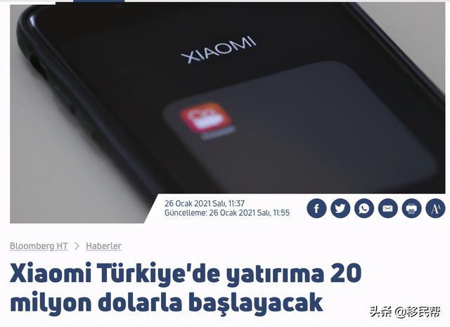 近日,据Bloomberg HT的新闻报道,中国企业小米将在伊斯坦布尔的Avcilar区建立工厂,在土耳其的投资将分为两个阶段。首批投资约2000万美元,预计将为当地创造2000个就业机会。第二阶段将增加产能,预计总投资额将达到4000万美元。