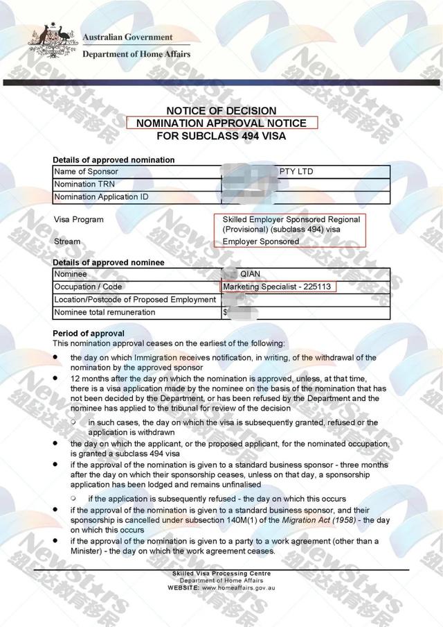 该客户深入地做了企业调研,给出了合理的建议并且指导雇主完成《市场劳动力测试》,同时还提供了大量的解释材料例如财报,组织结构图,职位描述来阐述企业担保此职位的合理性,最终拿下担保资格Sponsorship与494职位提名Nomination!