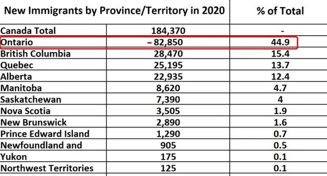 但是,在大数据下降的同时,安省的新移民人数仍然在加拿大新移民占比中有45%!近半数,保持加拿大最多人移民的省份!