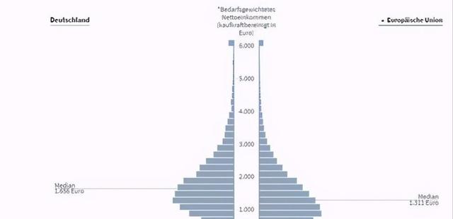 科隆一家研究机构根据来自欧盟统计局的各项数据,综合考虑了消费指数和购买力水平,对比了欧盟各国考虑到购买力的实际人均月可支配收入。根据这项研究,欧盟平均值是1311欧,德国平均值为1656欧,奥地利为1789欧。