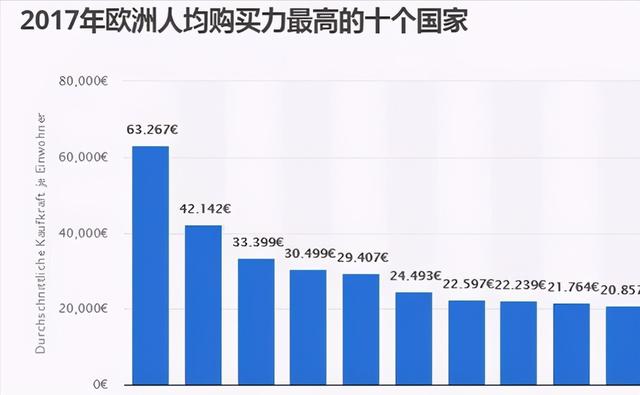 在德国另一家统计网站https://de.statista.com给出的2017欧洲各国人均购买力排名中,奥地利也领先德国: