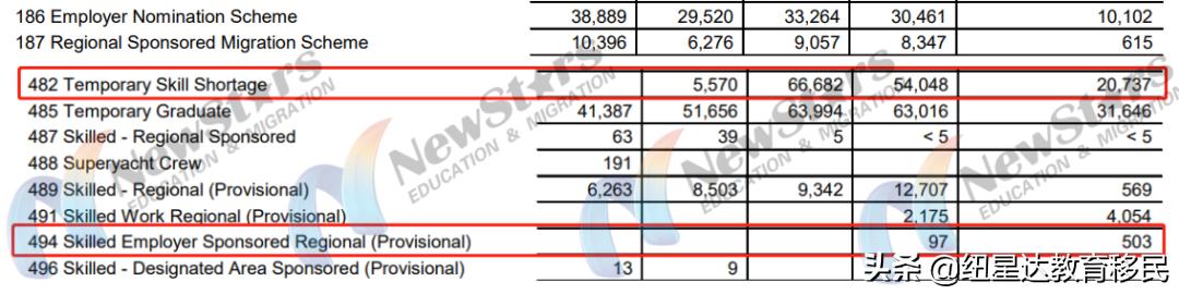 187和494部分也有受到新政策的影响,而482和186的雇主担保虽然在疫情期间有停滞一段时间,但签证审理和提名已经恢复。