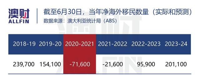 根据澳大利亚统计局(ABS)的预测,要到2023财年才能恢复净移民人数的正增长。