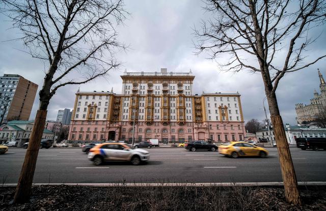 这是3月18日在俄罗斯莫斯科拍摄的美国驻俄罗斯大使馆。
