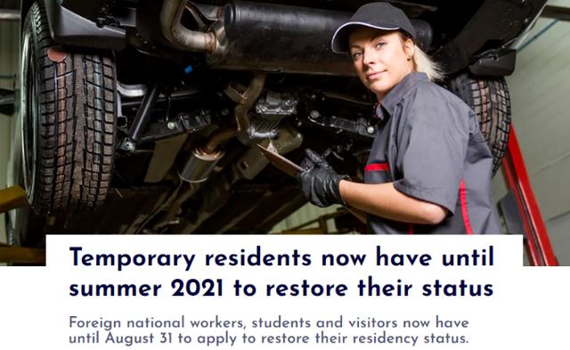 加拿大政府宣布延长临时访客恢复身份公共政策,帮助在其境内的临时访客、学生和工人更便利的留下。
