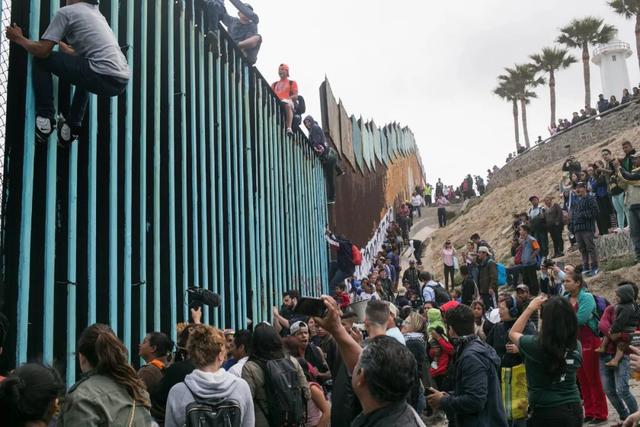特朗普在这堵墙上签名留念的时候,不知是否听得到移民墙的另一端成千上万整装待发的非法移民们的欢呼声和落井下石声。
