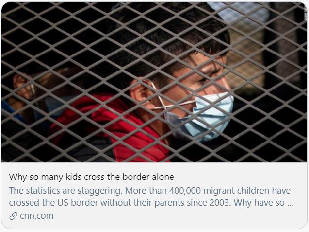 2019年,许多非法跨越边境的移民注意到,美国政府会遣返非法移民家庭,但不会遣返独自跨越边境的儿童。美国有线电视新闻网(CNN)分析称,为了增加他们留在美国的几率,父母们决定让儿童独自跨越边境。