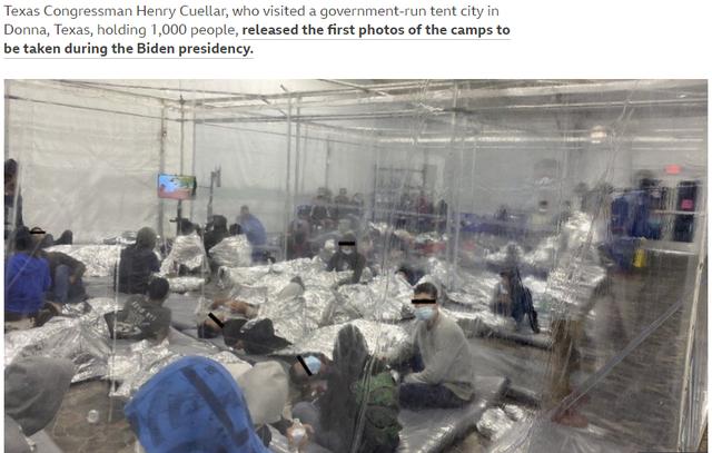 美墨边境收容和拘留的无人陪伴儿童移民。/BBC报道截图