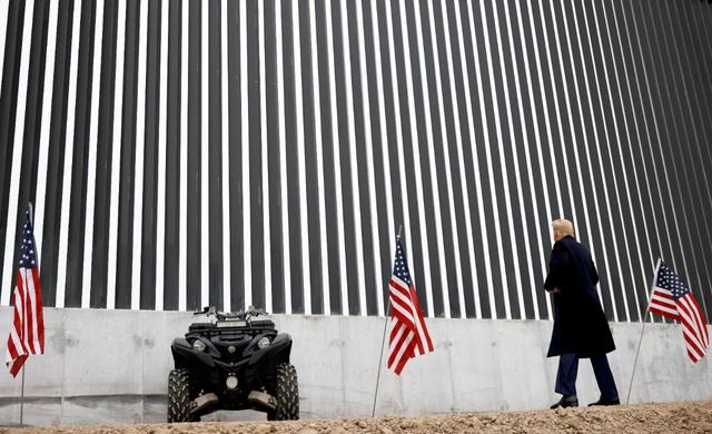 当地时间2021年1月12日,美国得克萨斯州阿拉莫,时任美国总统特朗普视察美墨边境墙。/IC Photo