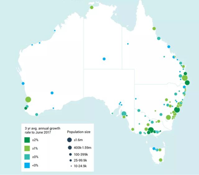 然而在截至2017年6月30日的三年中,悉尼、墨尔本、堪培拉和昆士兰州东南部平均每年至少有1.9%的人口增长。2015-16年,墨尔本的年增长率超过2.8%。