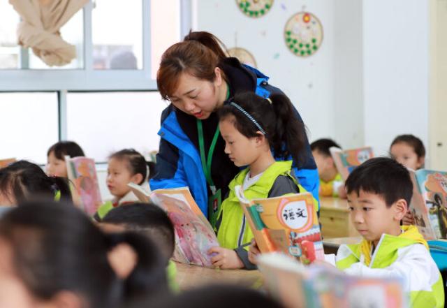 贵州省遵义市播州区第九小学课堂上,李永丽老师在辅导移民学生杨欣怡朗读课文 郑启彦 张学军 摄