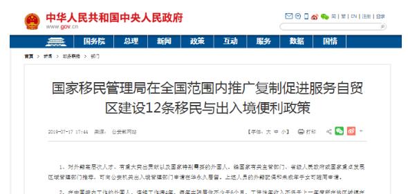 前不久的12条移民出入境便利新政出炉,