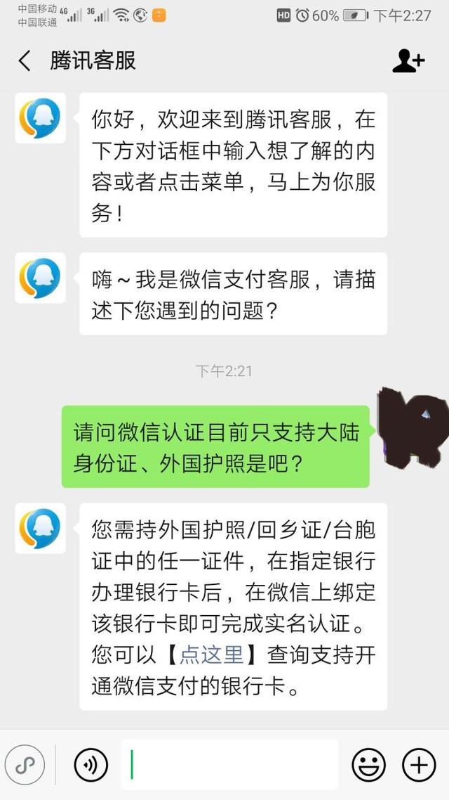 他一回国就想申请注册微信,但是却在微信支付开通上卡住了。