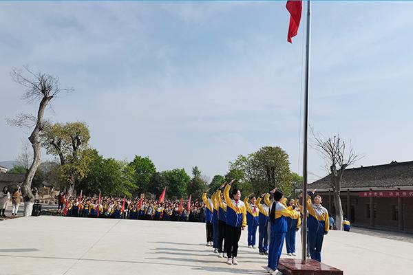 只用1个小时孩子们就走完了12公里的路程,顺利到达“梦里故乡”研学基地。在基地广场,他们首先举行了隆重的升国旗仪式。