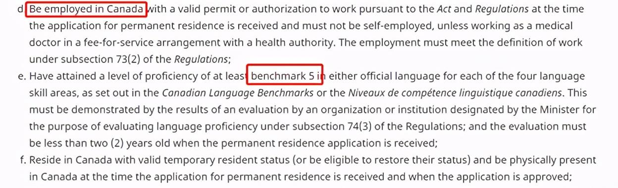 - 递交申请时本人在加拿大境内有工作(非自雇)