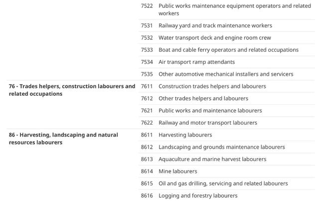 ② 有一年以上加拿大工作经验的其他规定职位上的工签临时工人,名额为3万人