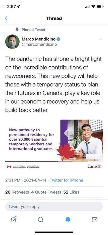重大利好!加拿大联邦移民部(IRCC)于4月14日下午发布移民新政!受益群体将多达9万人,包括加拿大工签持有人和国际留学生