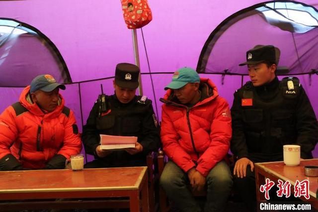 图为民警了解登山队人员信息情况。 珠峰边境派出所供图