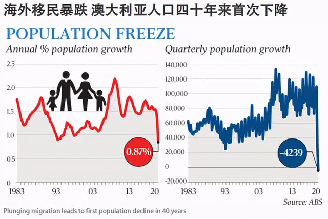 但现在,澳洲海外净移民人数, 40年以来首次降到负数。