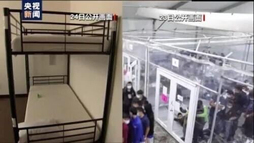 上周,一些白宫官员和国会议员共同参观了得克萨斯州的一处移民收容所,部分媒体记者也首次获准陪同进入,但只可携带一台摄像机,且禁止与移民儿童交谈。最终媒体看到的景象与此前流出的收容所内部视频反差巨大。此次参观也因此被众多网民讽刺为“摆拍”。
