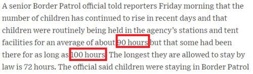 被关押的移民儿童处境堪忧。据边境执法官员称,这些孩子平均被关押长达约90小时,有些甚至长达100小时,远远超过了所允许的72小时上限。