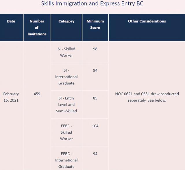 ● 加拿大BC省最新一轮省提名邀请情况发布