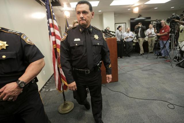 2017年6月,哈里斯郡警长冈萨雷斯在休斯顿召开新闻发布会。(图片来源:美联社资料图)