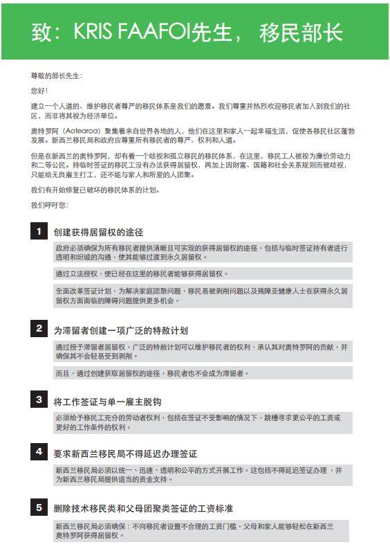 不知道会否有反响?(原标题:今天!新西兰绿党发公开信!呼吁大赦移民!给签证!取消薪资要求……)