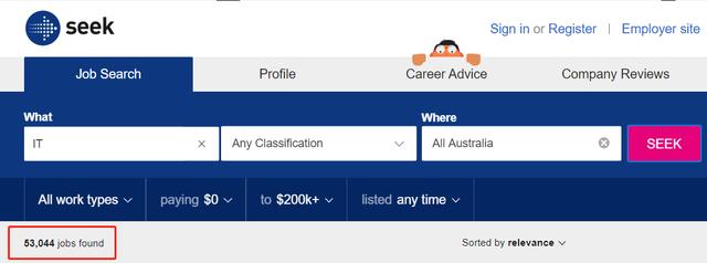 这些专业的就业前景我们可以参考澳洲最大的招聘网站SEEK上面的信息。蓝领类职业依旧是澳洲最好就业的行业,排在蓝领类职业后面的就是医疗类职业了,尤其是护士中的 Age Care非常吃香且平均工资达到了6W-7W澳币。排在第三类的就是IT,总共有9000+个招聘岗位,工资区间基本上7W-14W澳币。工程类的需求紧随其后,平均工资高达8.6W-13.8W澳币。