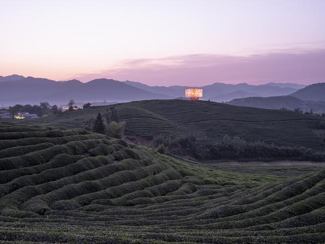 建筑师马岩松在茶山上放了一盏“灯”。那里是史子园的制高点,平时没有人会上去。仿佛为了给一贯被村民忽视的风景创造一个新的焦点,马岩松用半透的薄膜将山坡上的几颗大树包围起来。白天看,它像是一片掉落下的云朵;到了晚上,这个装置又变成了一盏灯,仿若一个轻轻摇曳的,五彩斑斓的梦境。