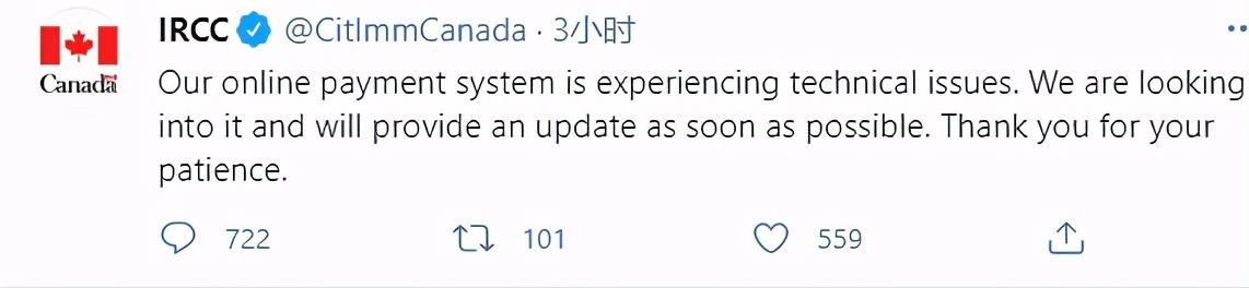 为此,IRCC不得不发布官方说明,告诉大家正在检查故障,会尽快恢复。(目前已经恢复正常)