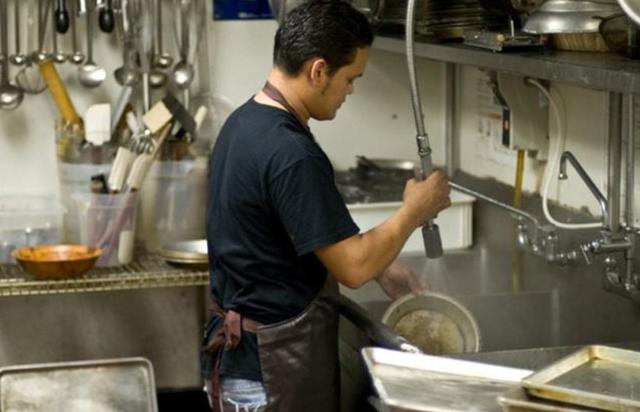 在美国餐厅刷盘子的华人移民