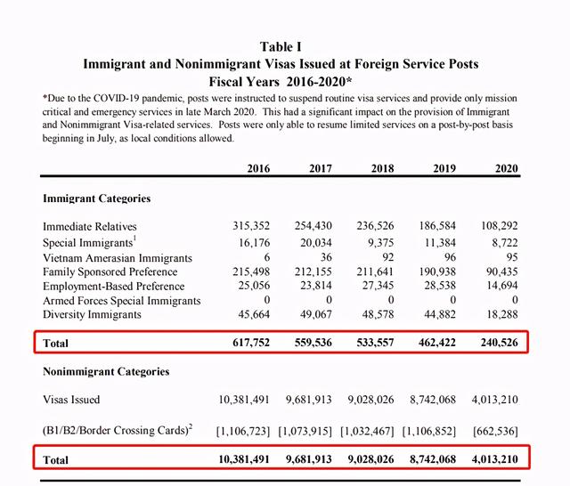 另外,美国国务院公布的2020财年各类移民签证和非移民签证审核发放的统计结果显示,美国2020财年一共发放了大约401万张非移民签证(去年移民签证一共发放24万),受疫情影响的原因,数量不到上一财年的一半。