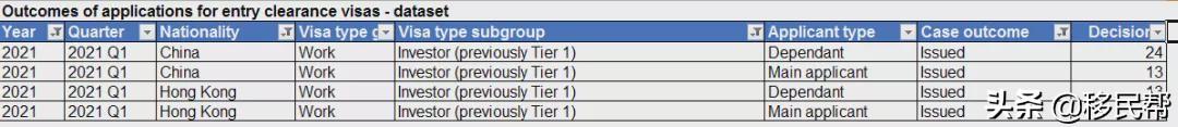 英国投资移民获批数据(包含主申请人和附属申请人)