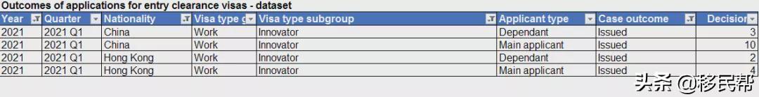英国创新者签证获批数量:中国大陆13人,中国香港6人(包含主申请人和附属申请人)。