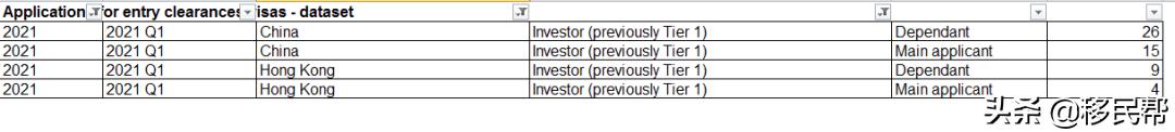 英国投资移民申请人数据(包含主申请人和附属申请人)